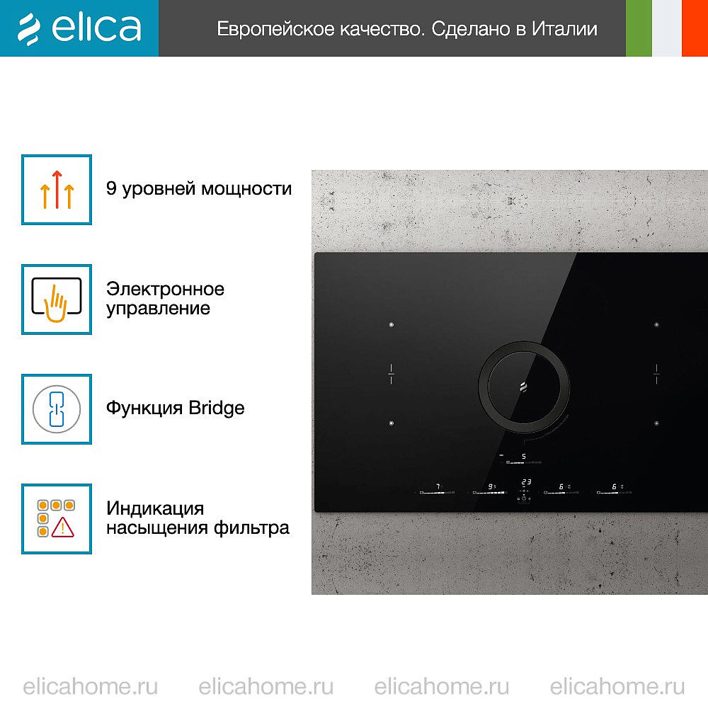 Девять уровней мощности дают полный контроль над процессом приготовления, позволяя точно настроить температуру для каждого блюда. Это особенно полезно для деликатных рецептов, где важен плавный нагрев. Elica внедряет интуитивно понятное сенсорное управление, упрощающее настройку. Благодаря такому разнообразию мощностей, варочные панели экономят энергию и обеспечивают комфортное приготовление.