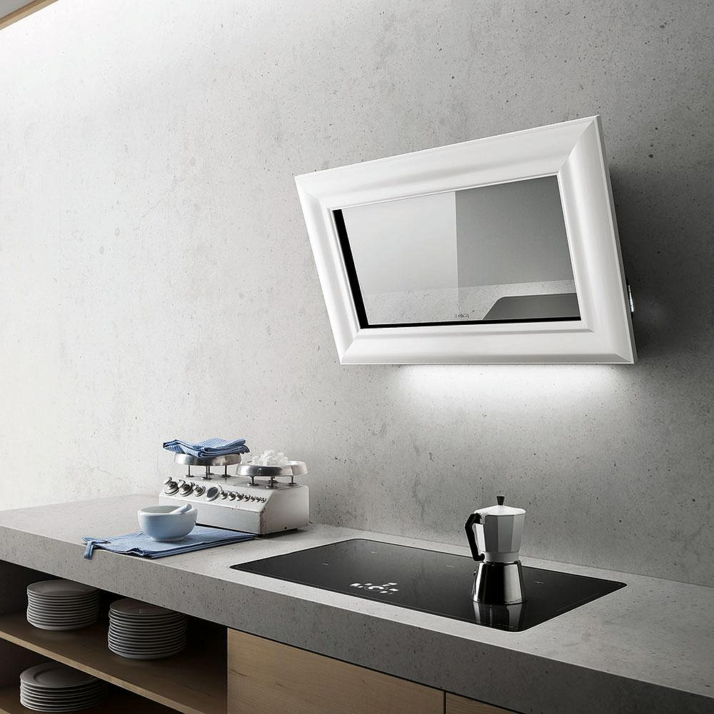 Устройство крепится к стене. В ассортименте Elica на стену монтируются настенные и наклонные вытяжки.