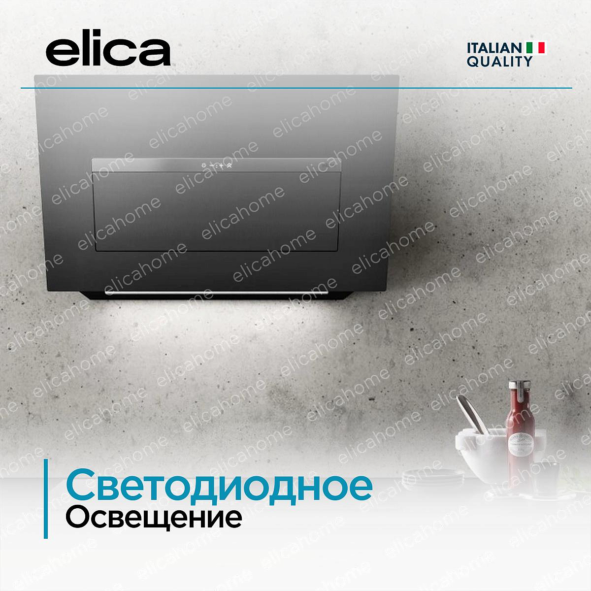 Устройство крепится к стене. В ассортименте Elica на стену монтируются настенные и наклонные вытяжки.