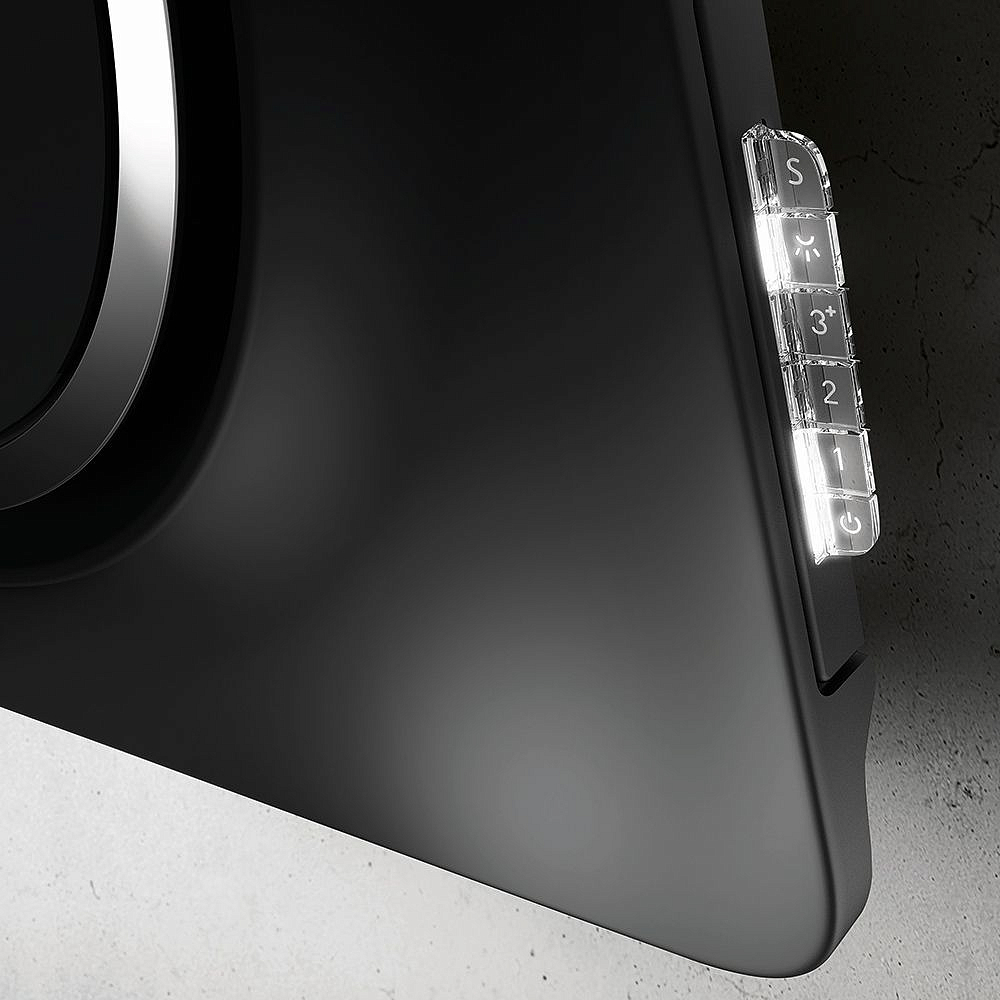 Преимущества. С помощью системы Back Aspiration отвод воздуха может осуществляться прямо в отверстие в стене, без дополнительного декоративного короба воздуховода, что дает большой простор для дизайнерских решений. Удобное электронное управление на боковой панели вытяжки регулирует три основных и одну интенсивную скорости вентилятора.