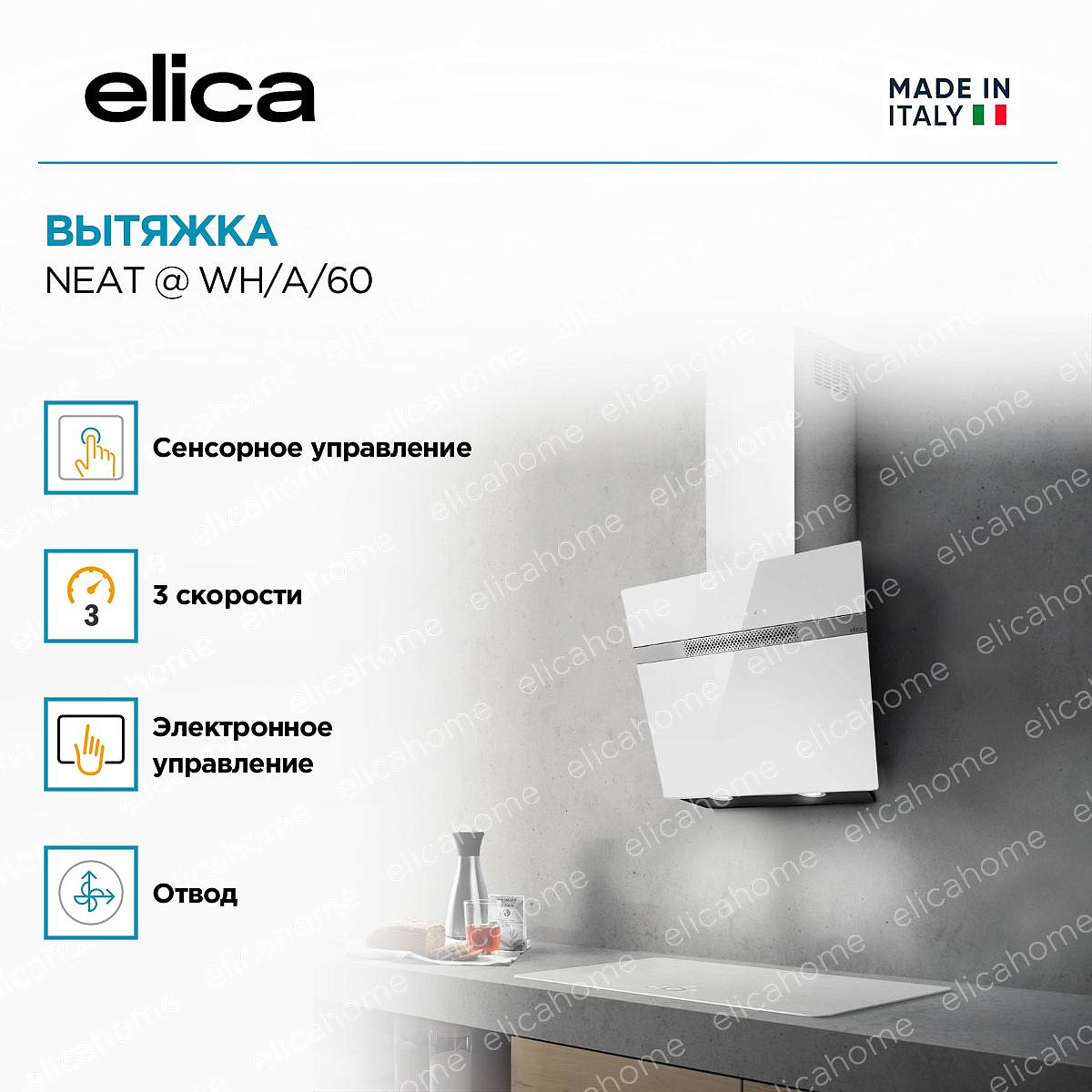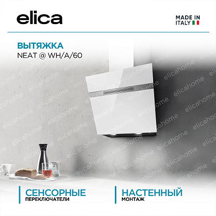 Вытяжка Elica Neat WH A 60 — это современное решение для кухни, сочетающее в себе функциональность и стильный дизайн. Итальянский производитель сделал ставку на минимализм и элегантность, благодаря чему данная модель станет настоящим украшением любого интерьера. Белый цвет корпуса добавляет изделию легкости и воздушности, а гладкие линии и простые формы подчеркивают его современный стиль. Внешний вид вытяжки дополняет ее продуманный функционал. Модель оснащена электронным управлением с сенсорными элементами, что делает ее использование максимально комфортным и простым.