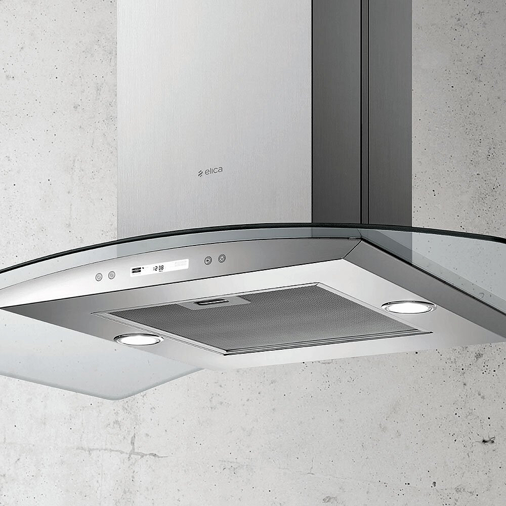Устройство крепится к стене. В ассортименте Elica на стену монтируются настенные и наклонные вытяжки.