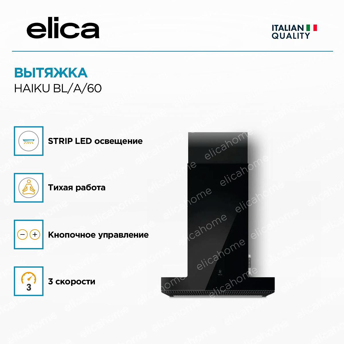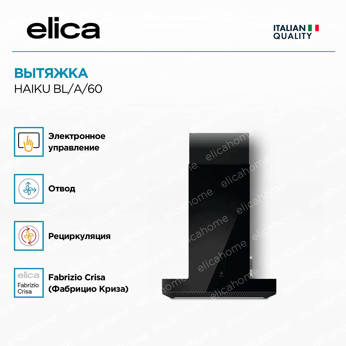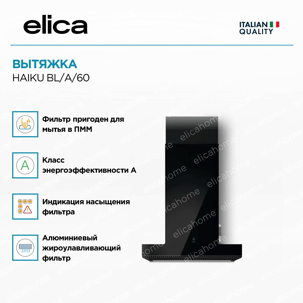 Вытяжка ELICA HAIKU BL/A/60 удобна, надёжна и эффективна. Это невероятно удобная модель с практичным дизайном от известного производителя. Её мощный двигатель, изолированный от грязи и жира, сохраняет высокую производительность, низкую температуру.