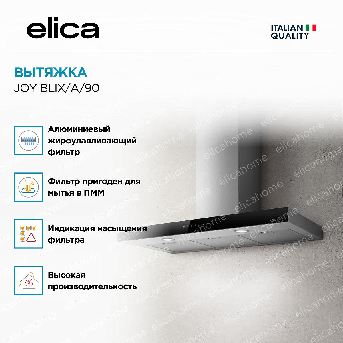 Вытяжка ELICA JOY BLIX/A/90 — это монтируемая на стену над варочной панелью модель, которая имеет высокую производительность и простату в эксплуатации. Она отличается стандартными размерами, качественной и безопасной работой, а также обширным набором функций.