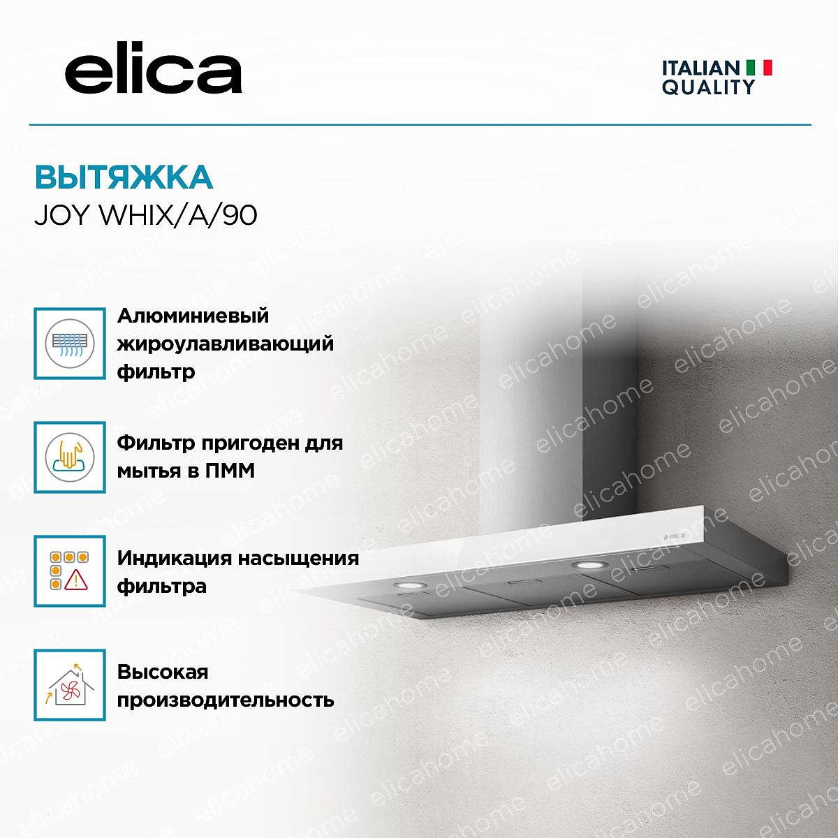 Вытяжка ELICA JOY WHIХ/A/90 — это современная вытяжка, которая имеет высоту 62 см, ширину — 89,8 см, глубину — 45,5 см. За счет своего универсального дизайна «нержавеющая сталь» она украсит и дополнит любой кухонный интерьер. В комплектацию входит жироулавливающий фильтр. Он предотвращает появление жира на кухонных стенах, мебели, потолке, а также устраняет из воздуха частицы продуктов переработки, которые образуются во время приготовления пищи.
