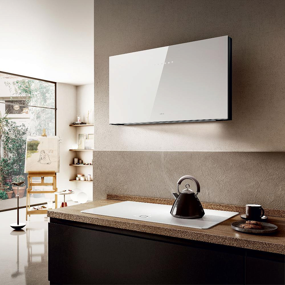 Устройство крепится к стене. В ассортименте Elica на стену монтируются настенные и наклонные вытяжки.