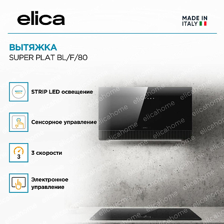 Выбрать нужную скорость можно с помощью удобно расположенных сенсорных кнопок. Установить скорость вытяжки Элика SUPER PLAT BL/F/80 можно, отталкиваясь от количества готовящихся блюд.