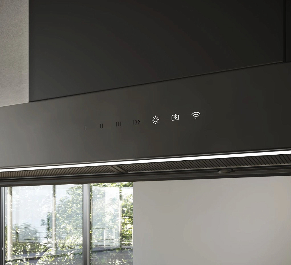 Благодаря возможности подключения к Wi-Fi вы можете управлять вытяжкой дистанционно, в том числе и с помощью голосового помощника. Приложение позволяет включать и выключать прибор, подсветку, настраивать интенсивность и задавать все необходимые параметры работы. В нем также отображается информация о состоянии фильтров, так что вы будете точно знать, когда их пора почистить или заменить.