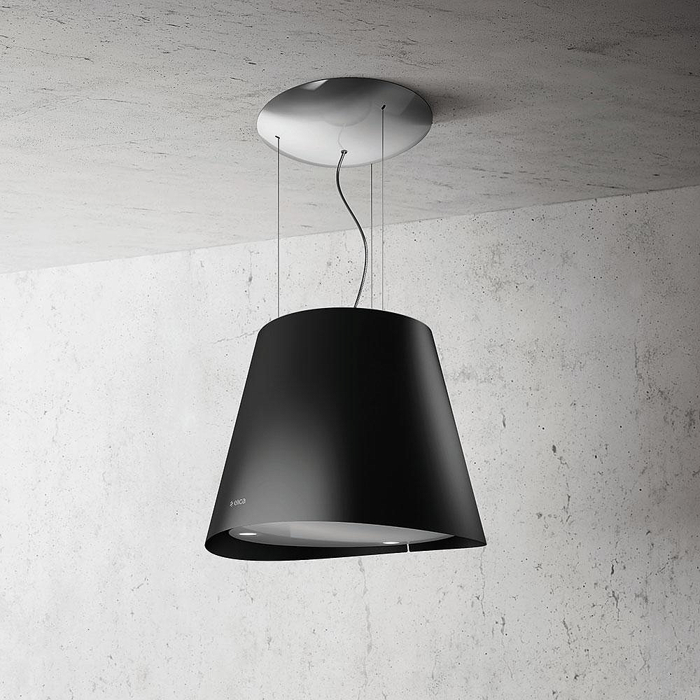 Устройство крепится к потолку. Существует два типа вытяжек Elica, крепящихся к потолку: островные (с дымоходом) и подвесные (без дымохода).