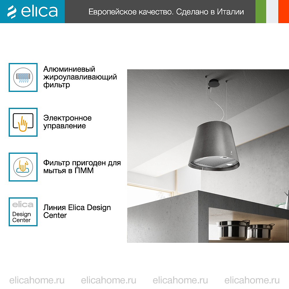 Дизайн от ELICA DESIGN CENTER является вершиной инноваций и стиля, представляя вытяжки, которые выходят за рамки обычной техники и становятся центральным элементом кухонного пространства. Эти вытяжки разрабатываются ведущими дизайнерами, которые используют передовые материалы и технологии для создания смелых и выразительных форм, делая каждую модель произведением искусства. Линия ELICA DESIGN CENTER ориентирована на тех, кто ценит красоту в каждой детали и стремится к идеальному сочетанию функциональности и внешнего вида.