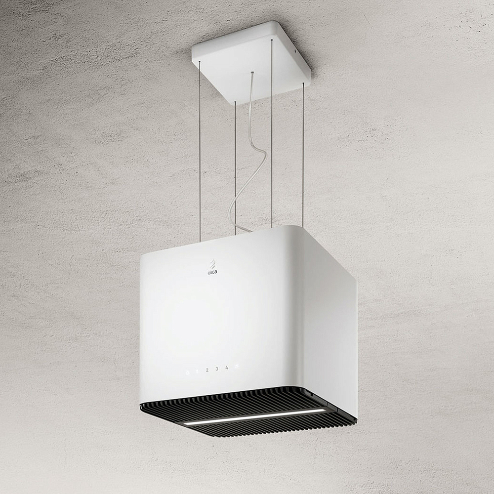 Устройство крепится к потолку. Существует два типа вытяжек Elica, крепящихся к потолку: островные (с дымоходом) и подвесные (без дымохода).