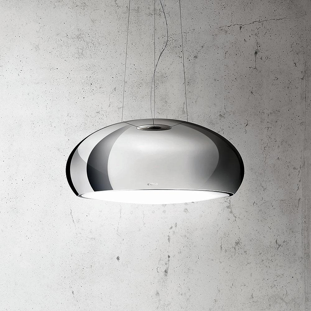 Устройство крепится к потолку. Существует два типа вытяжек Elica, крепящихся к потолку: островные (с дымоходом) и подвесные (без дымохода).