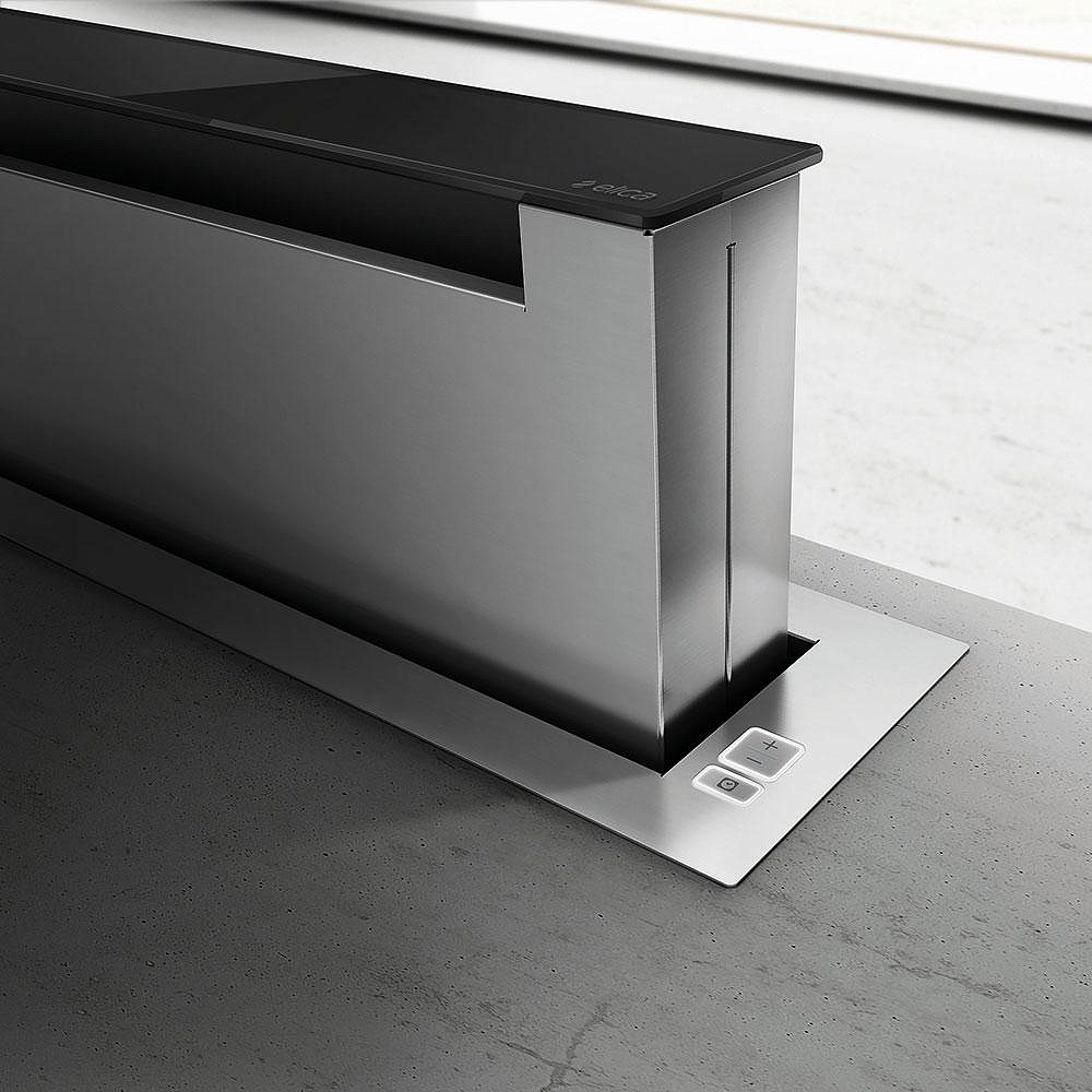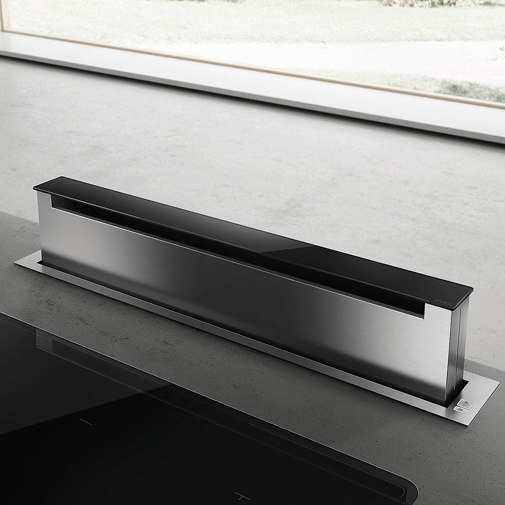 Установка техники осуществляется в столешницу, что позволяет экономить пространство и делает ее незаметной на фоне другой кухонной мебели. При этом, несмотря на компактные размеры (высота от 51 до 65 см, ширина 83.5 см и глубина от 12 до 25 см), эта модель обладает высокой производительностью в 669 м³/ч, которую можно увеличить до 1200 м³/ч в интенсивном режиме.