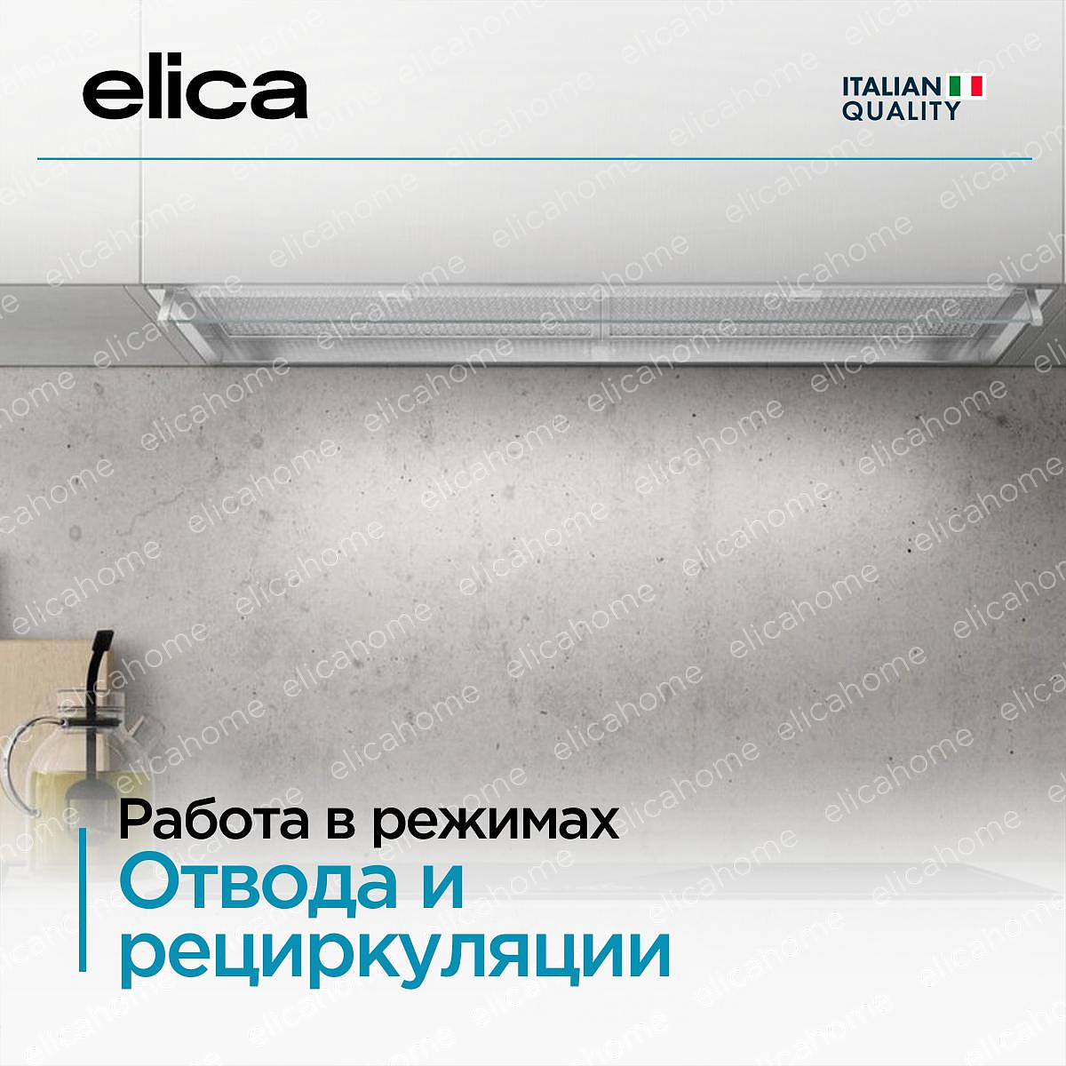 Уникальная система светодиодной подсветки, которая позволяет регулировать ее интенсивность в зависимости от необходимости увеличивая или убавляя яркость. Кроме того, можно задать даже оттенок света, сделав его более теплым ли холодном в зависимости от ваших предпочтений. Настройки можно задавать также в приложении ElicaConnect при помощи мобильного устройства.