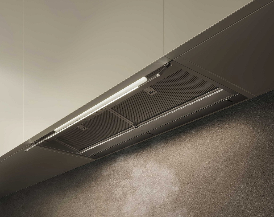 Устройства, которые встраиваются в шкаф или в столешницу. При этом двигатель и все функционирующие элементы, как правило, скрыты. На поверхности остаются лишь декоративные фасады, козырьки и панели управления.
