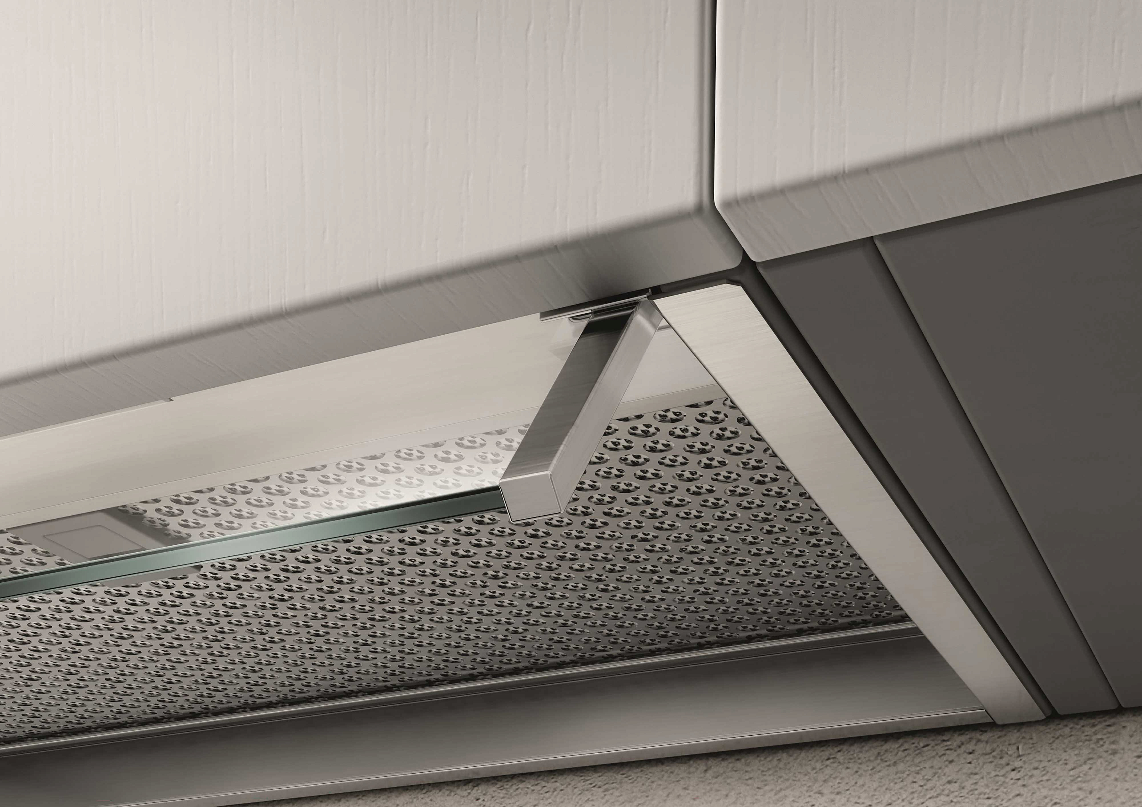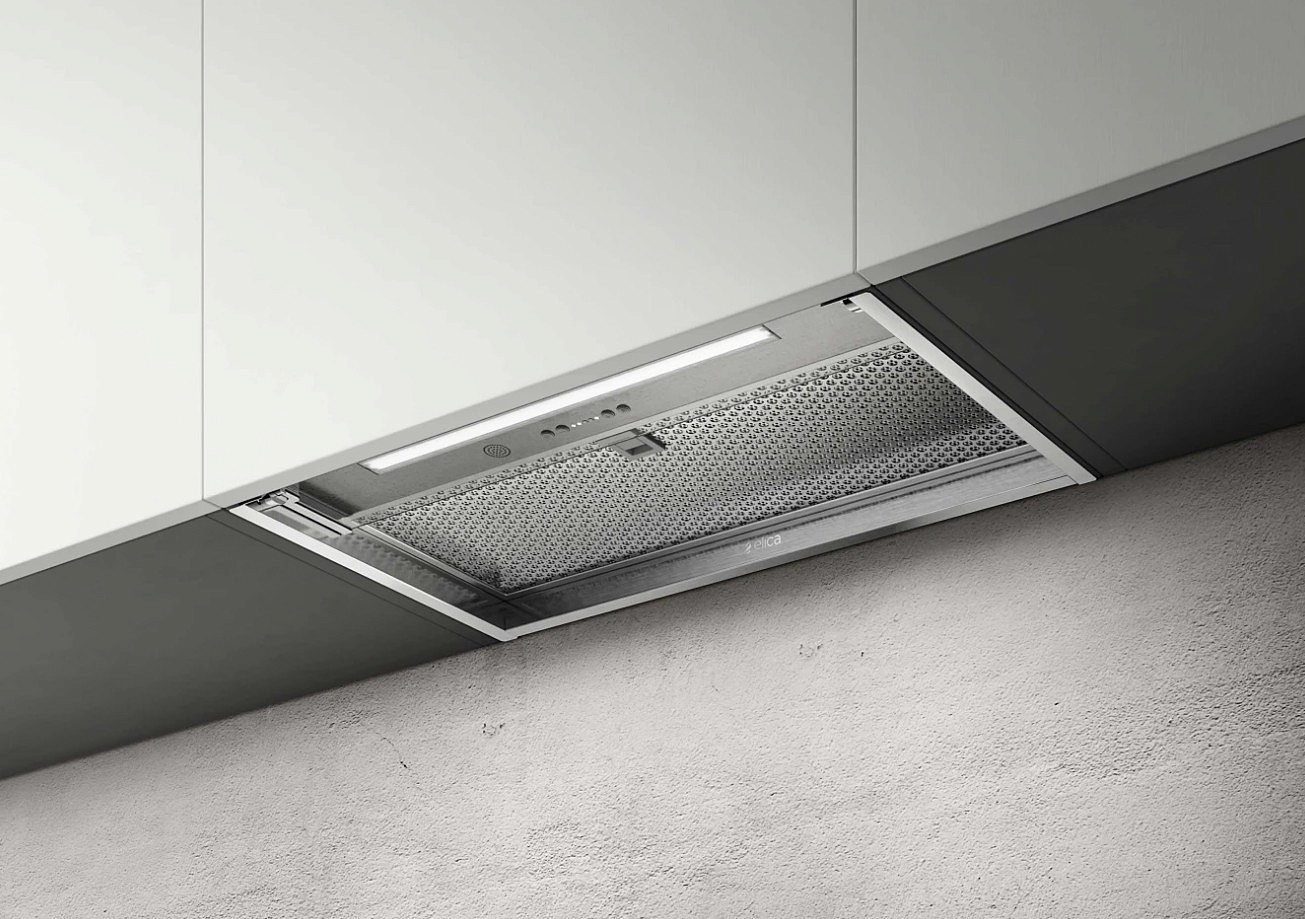 Устройства, которые встраиваются в шкаф или в столешницу. При этом двигатель и все функционирующие элементы, как правило, скрыты. На поверхности остаются лишь декоративные фасады, козырьки и панели управления.