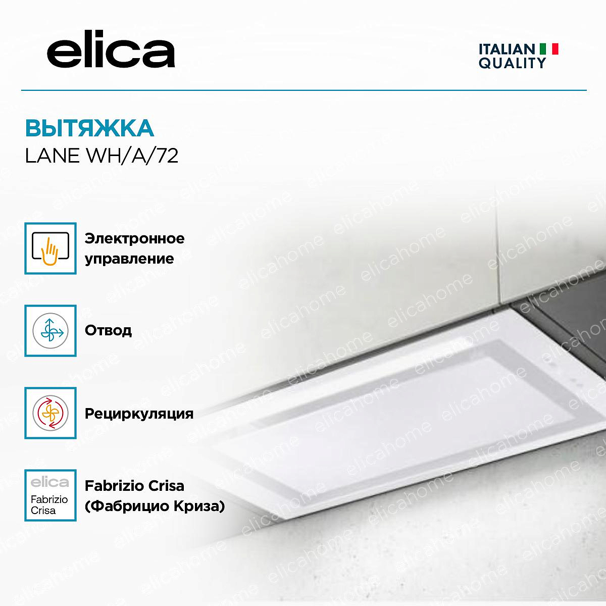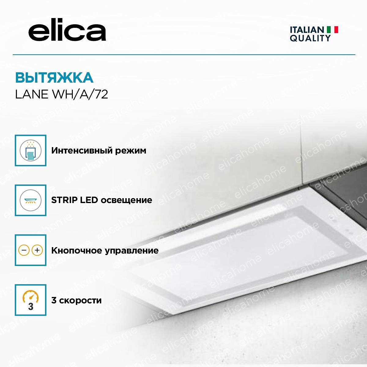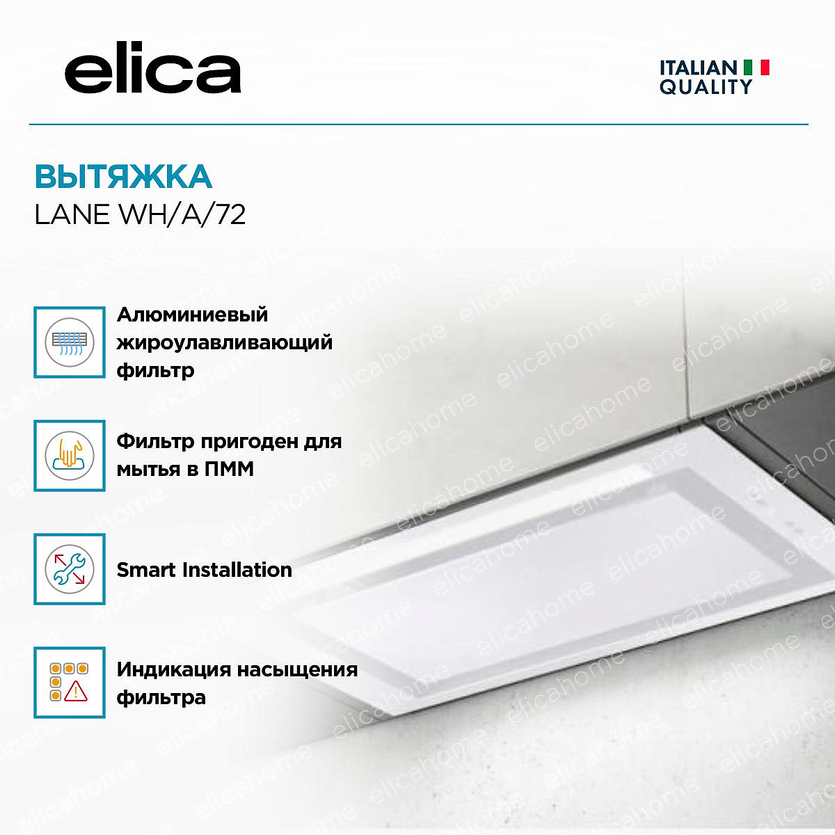 Вытяжка Elica LANE WH/A/72 оптимальна для очищения воздуха от дыма, пара и запахов. Устройство работает при подключении к стандартной электрической сети с максимальной потребляемой мощностью 257 Вт. Данное устройство монтируется в шкаф непосредственно над плитой для эффективного выведения испарений и запахов в процессе приготовления пищи.