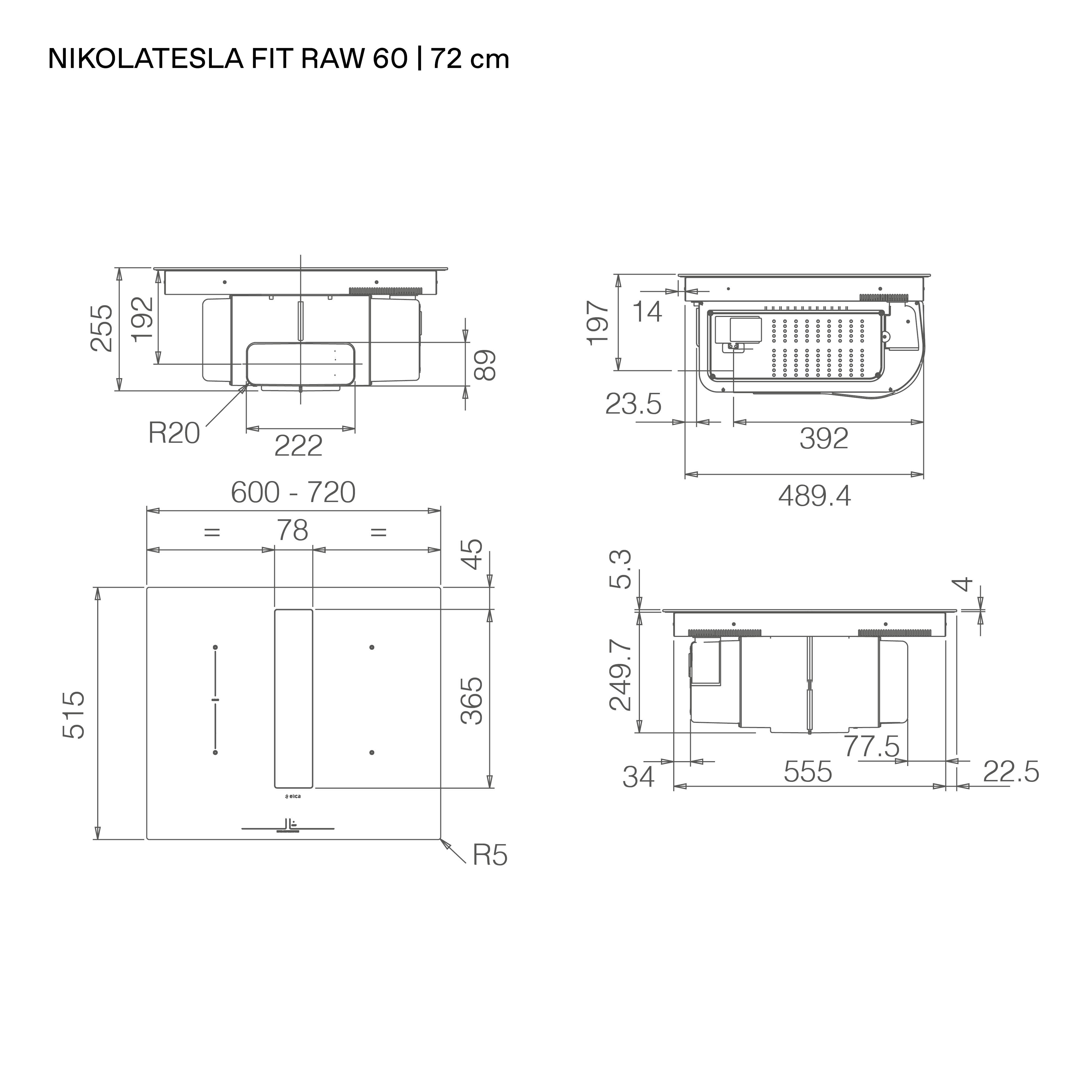 Схема встраивания для варочной панели Elica NIKOLATESLA FIT RAW BR/A/60