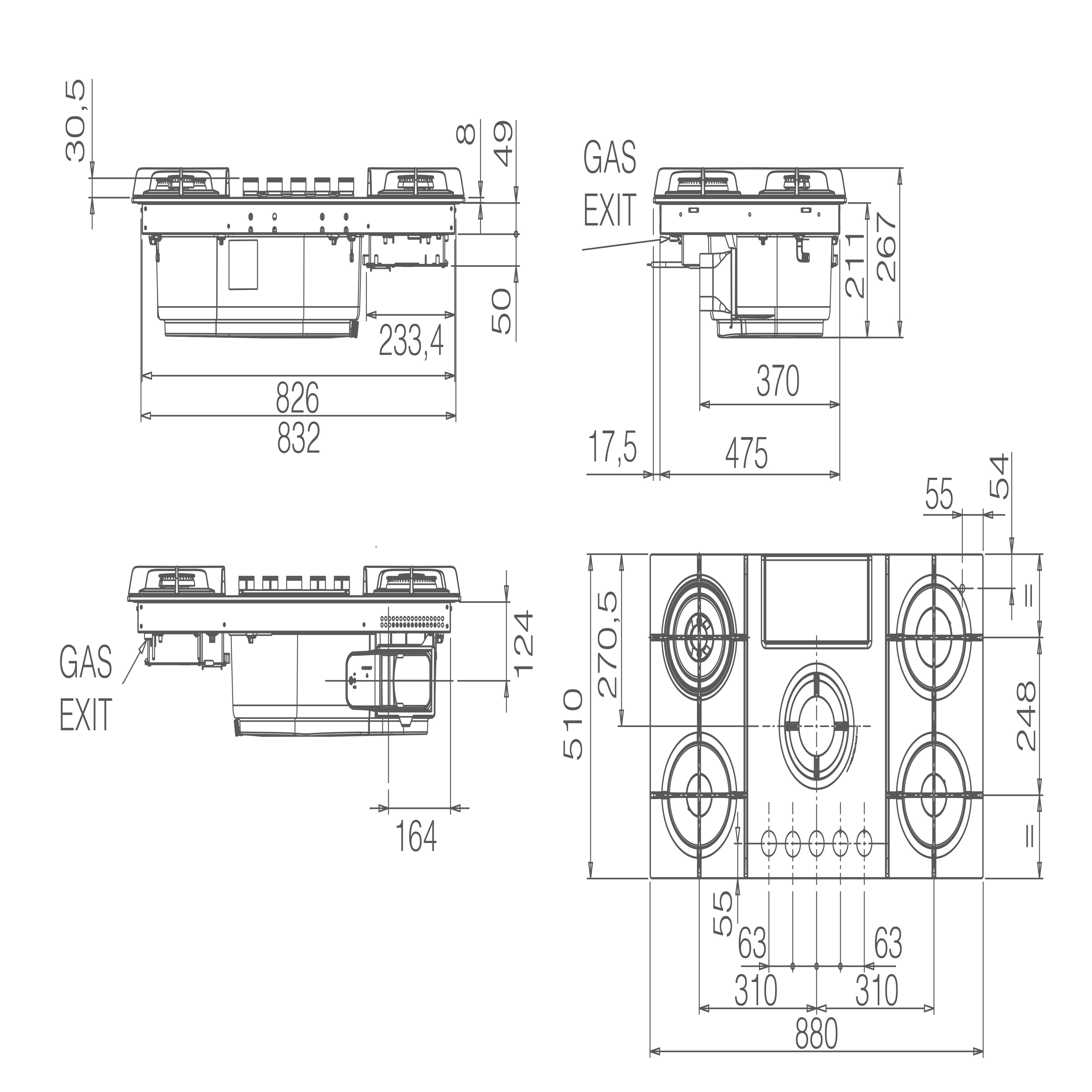 Схема встраивания 2 для варочной панели Elica NIKOLATESLA FLAME EVO BL/A/88