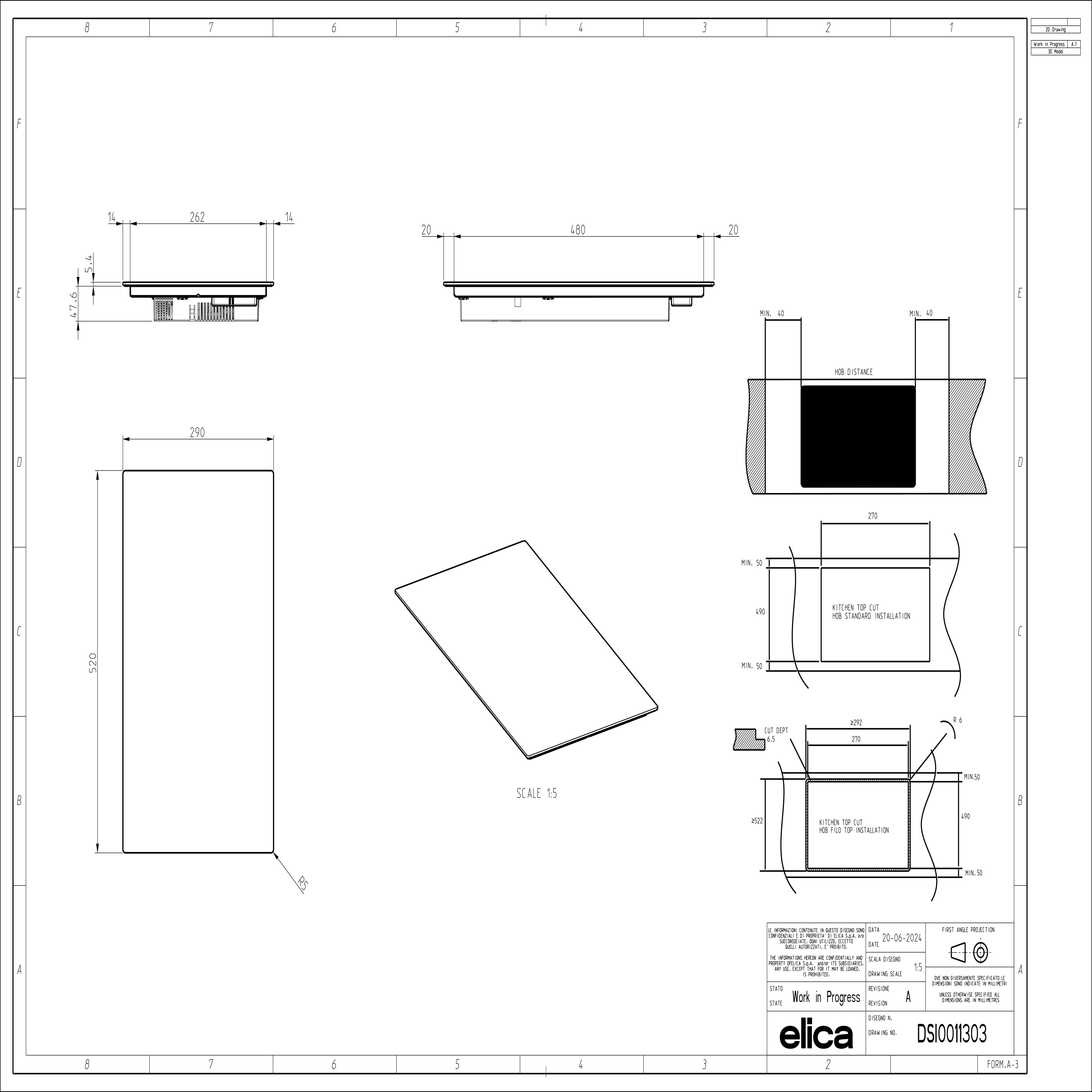 Схема встраивания 1 для варочной панели Elica Ratio Connex 302 Plus