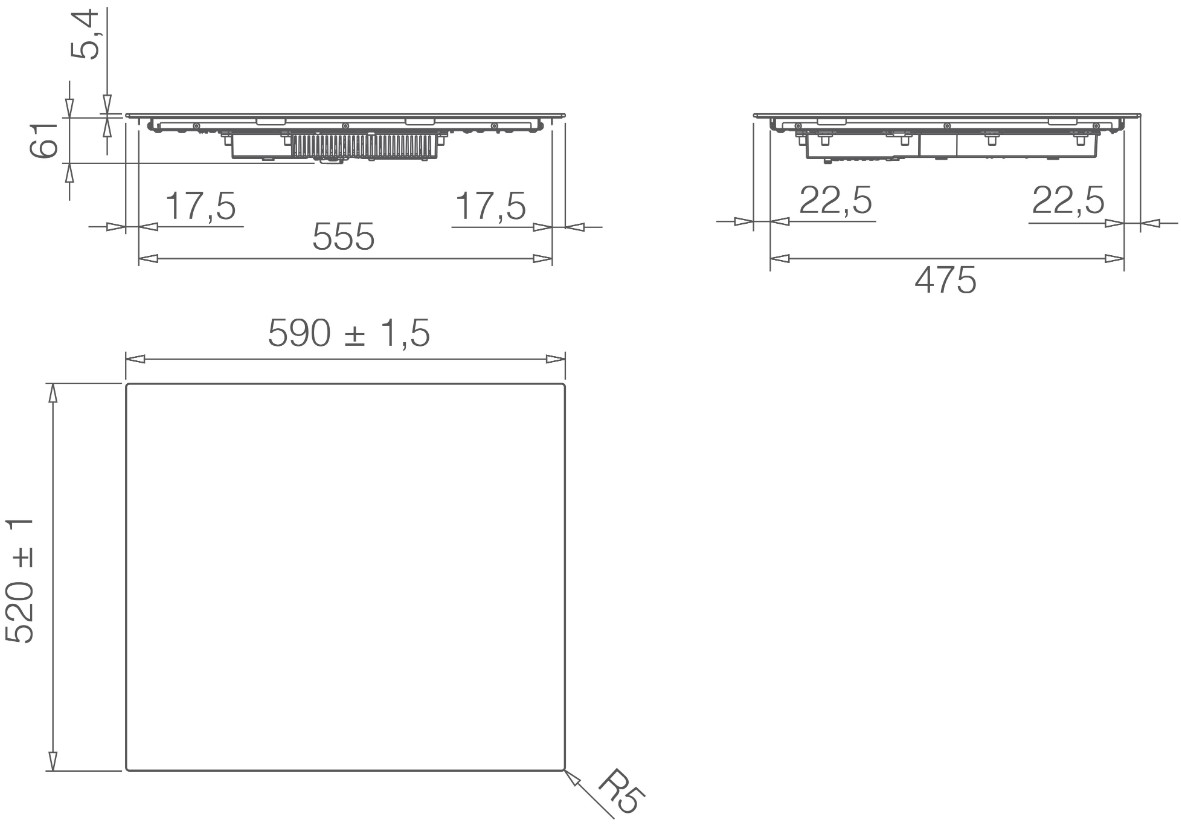 Схема встраивания для варочной панели Elica PRIMIS 603 BL