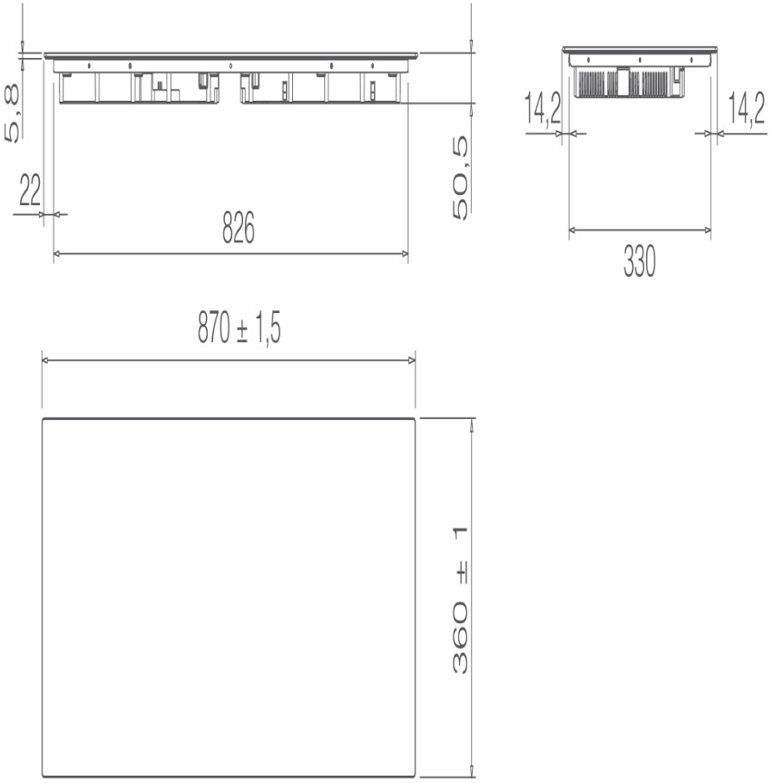 Схема встраивания для варочной панели Elica RATIO 874 SLIM BL